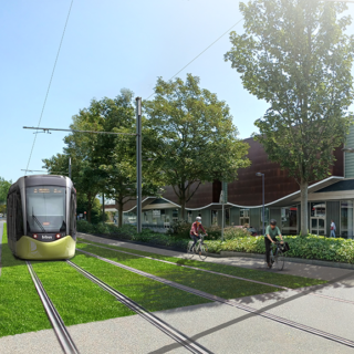 Enfin, les aménagements cyclables et les espaces verts accompagnants la ligne de tramway apportent à celle-ci une véritable envergure urbaine. Le Tram devient alors vecteur de développement durable.