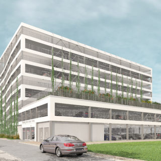 Le parking se pose comme une vitrine urbaine simple et élégante, dont un subtil jeu de construction lisible permet de mettre en valeur la fonction du bâtiment. Un jeu de pliage origamique, vient apporter un mouvement. La végétation vient conquérir les façades, ancrant davantage le bâtiment dans le paysage, avec notamment une toiture maraîchère de 660 m². Cette écriture, sobre et intégrée, propose également une ambiance intérieure accueillante, permettant de guider tous les usagers au sein d’un même volume compact, clair, pérenne et sécurisant. L’expérience parking est ainsi pleinement vécue.
